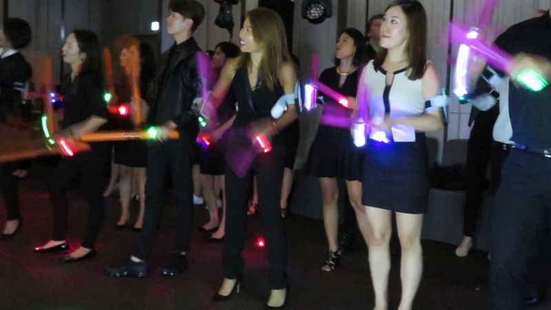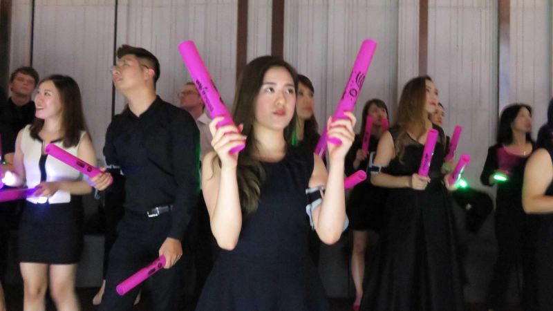 Teams compete playing high energy music with their smart phones.